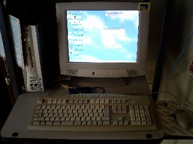 パソコンは難しいですね。嫁さんが「ジャパネット○かだ」(ネット通販)で、パソコンを購入しました。嫁さん用のが、かなり古くなっていたので(Win98)、嫁さんが自分で探して購入しました。こういったとき、ネットは便利ですね。なかなか気軽に外出できない障害者にとっては、ネットは外部との重要な接点となります。で、昨日、酔いもさめたことから(笑)、セッティングを始めました。パソコンの初期設定は、簡単にできたんですが・・・無線LANの接続に手間取りました。電波は受信しているのですが、ネットに接続できないんです。外部無線LANカードは、設定したことがあったんですが、今回のパソコンは内臓タイプだったんです。悩むこと2時間、諦めて晩酌してたとき、ひらめきました。「もしかして、MACフィルタかけていたっけ」・・・ピンポン!セキュリティのため、登録していない無線LANカードからは接続できないように、フィルタをしていたのをすっかり忘れてました(^^ゞフィルタを解除したら、見事、接続成功!やれやれでした。しかし、内臓タイプには、MACアドレスが表示されていないんですね・・・もしかしたら、自分が見つけられなかっただけかもしれませんが。久しぶりのセッティングでしたが、相変わらずパソコンのマニュアルは不親切ですね。いつになったら、家電並みになるんでしょうか。フィルタを解除したので、セキュリティには若干の不安がでましたが、まあ、WEPキーを設定しているので、めったなことはないかなと思ってます・・・甘いですかね(笑嫁さん用のデスクトップ型、Win98です。LANケーブルで接続してます。自分用のバイオ、XPです。もう4年くらいになるので、スペック的にはかなり落ちます。不自由は感じませんが。外部無線LANカードで接続してます。で、これが、今回購入したやつです、嫁さん用です。画面がきれいで、メモリも512積んでます。内部無線LANで接続してます。我が家のネットワークです(笑