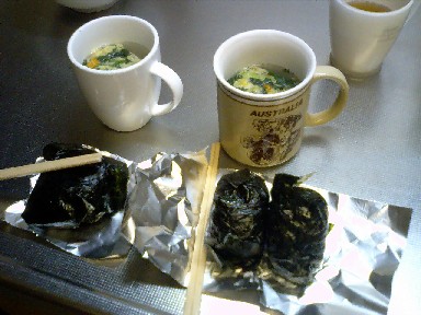我が家の長男は、高校受験です。で、まあ、夜食を作りました。おにぎりと、インスタントの卵スープです。皿とか洗うの面倒くさいので、アルミホイルと割り箸です(笑1個の方は、妹用です。受験生ではありませんが、ついでです(^^ゞおにぎりは、得意です・・・塩加減が絶妙と、嫁さんからも好評です(^_^)v
