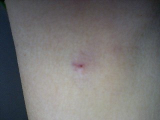 献血しました。ちょっと悪趣味かな(^^ゞ注射針の跡です(笑今回(前回)、針が刺さってるところを狙ったんですが・・・さすがに、自分で気色悪くなりました(笑ところで、献血手帳が磁気カードに変わりました。これです。次回の献血可能日とかが、表示されてます。なぜか、暗証番号まで登録してあります・・・いったい、なんで?一年に4回くらいは、献血したいと思っているんですが、なかなかですね(^^ゞ