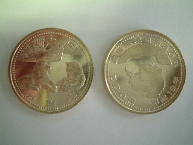 久しぶりに記念硬貨を手に入れました。「南極地域観測50年」の500円硬貨です。左の方には、タロ・ジロと南極観測船「宗谷」、右は南極大陸が描かれています。マニアではありませんが、気がついたときには、小まめに収集してます。一番古いのは、確か、東京オリンピックの100円硬貨だった思います。今度、ご紹介しますね。ところで、硬貨の表裏はどちらでしたかね?わからなかったので、左右で表現しちゃいました(^^ゞ