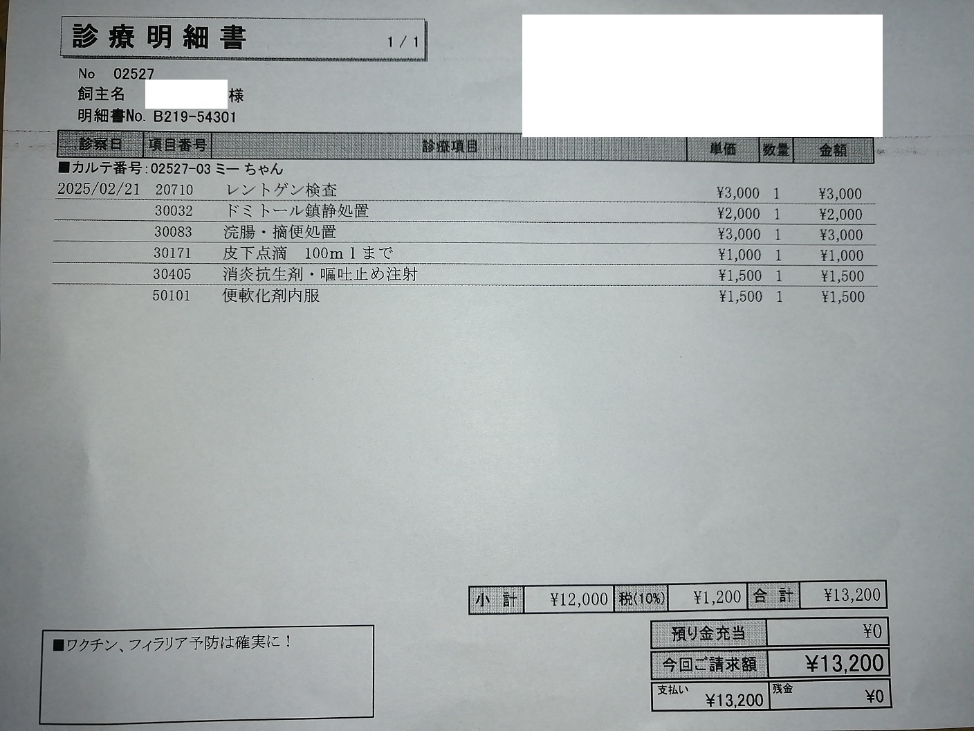 ネコです(笑急に嘔吐を繰り返すようになったので、犬猫病院へ連れて行ったところ、便秘が原因でした。治療費 13,200円 (^^ゞ生まれて初めての浣腸と摘便で疲れ果てたネコでした(笑