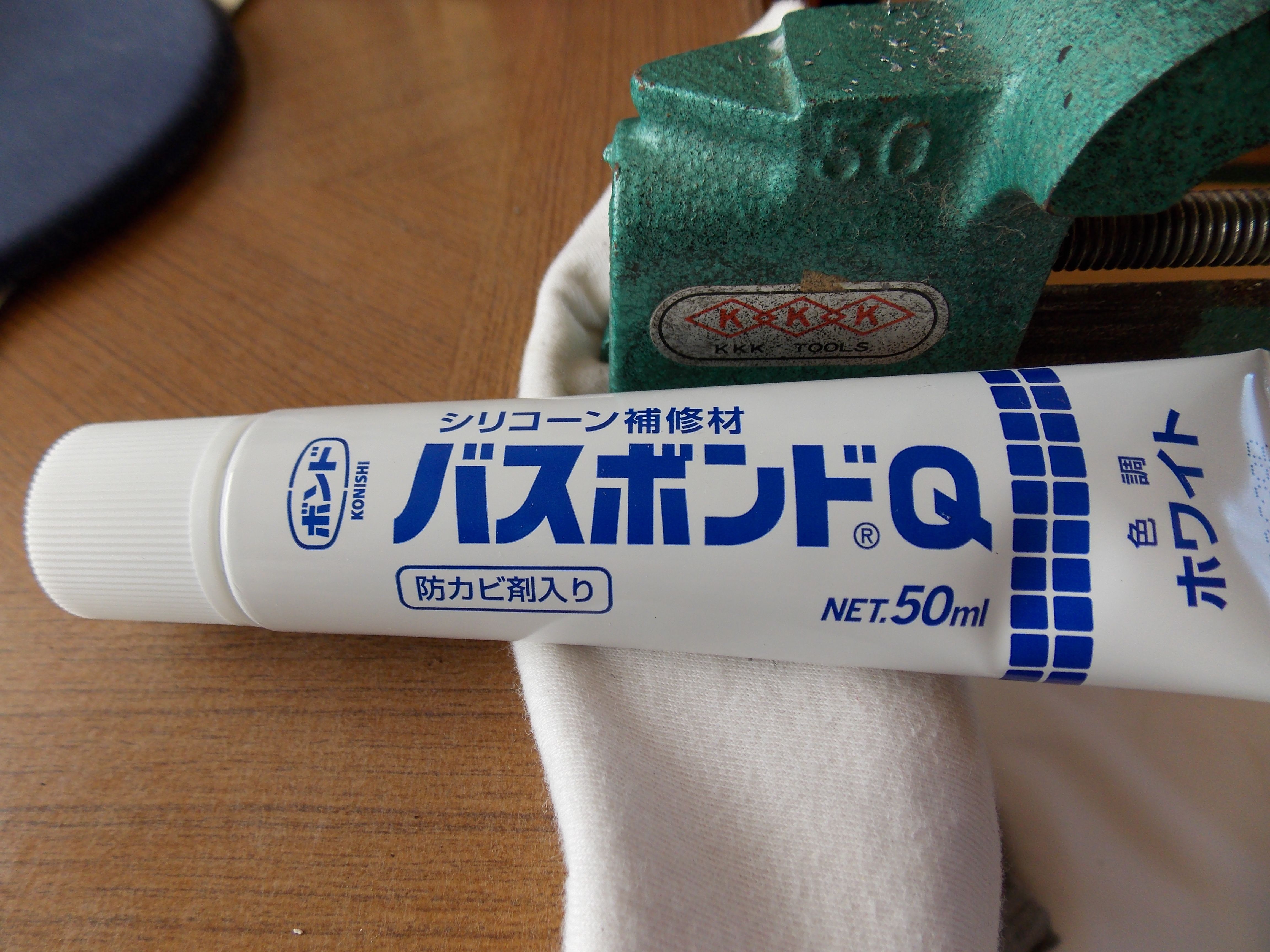 開いた穴を何で塞ごうかと考えた結果、硬化後も弾力が残るシリコーン補修材を使用することにしました。