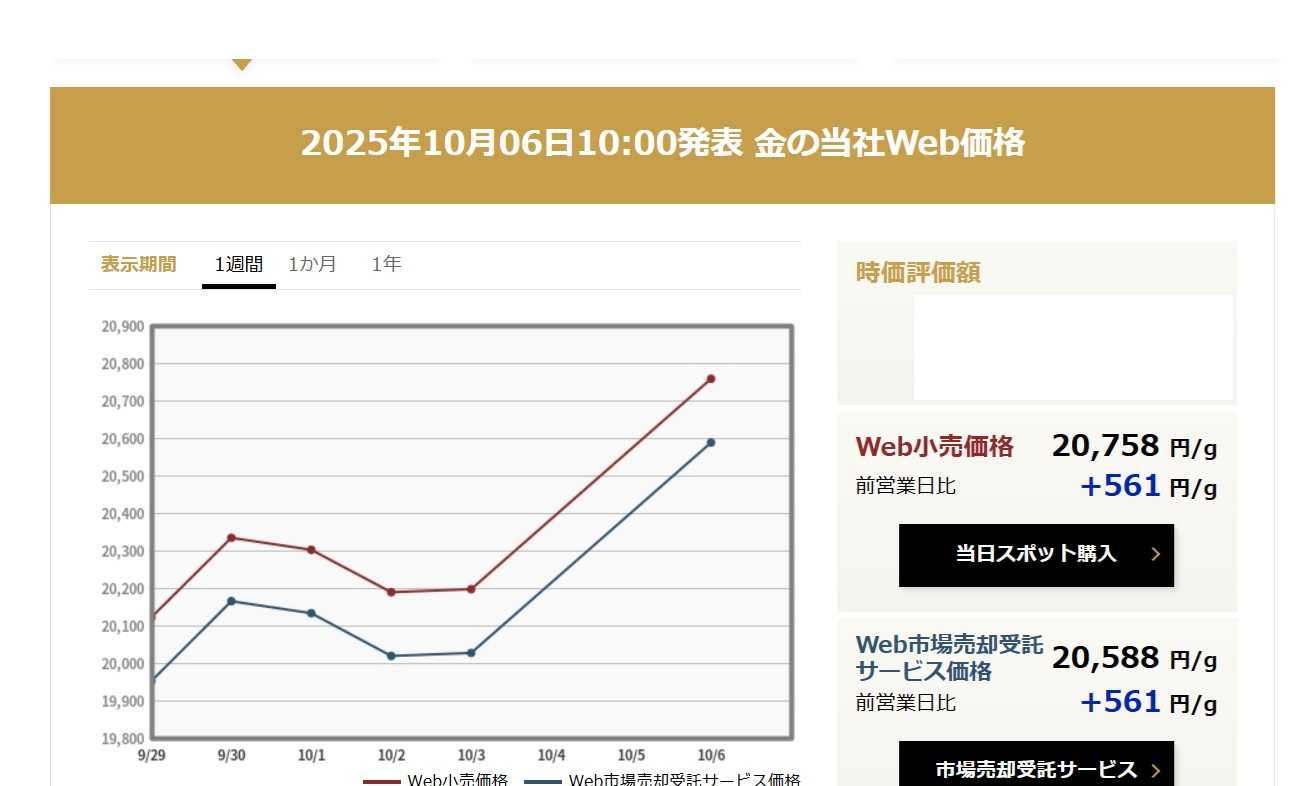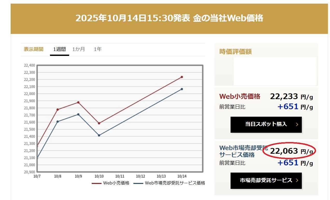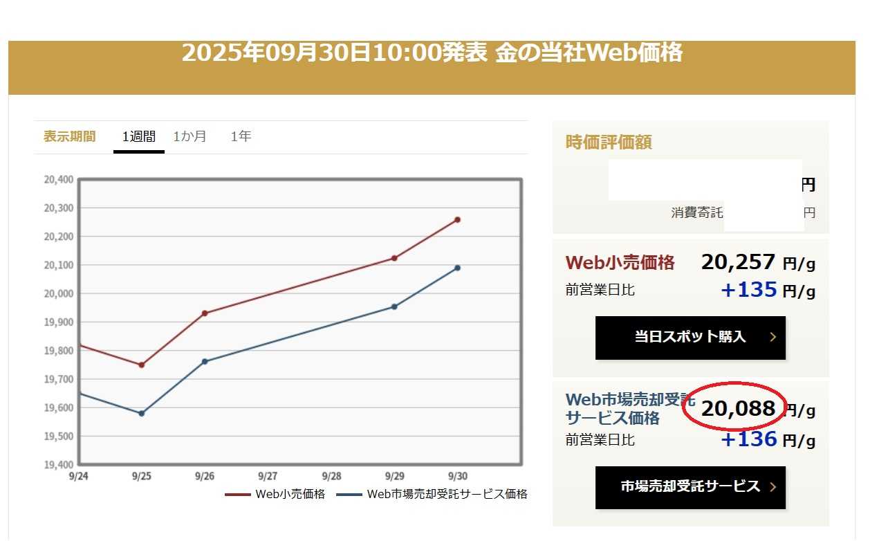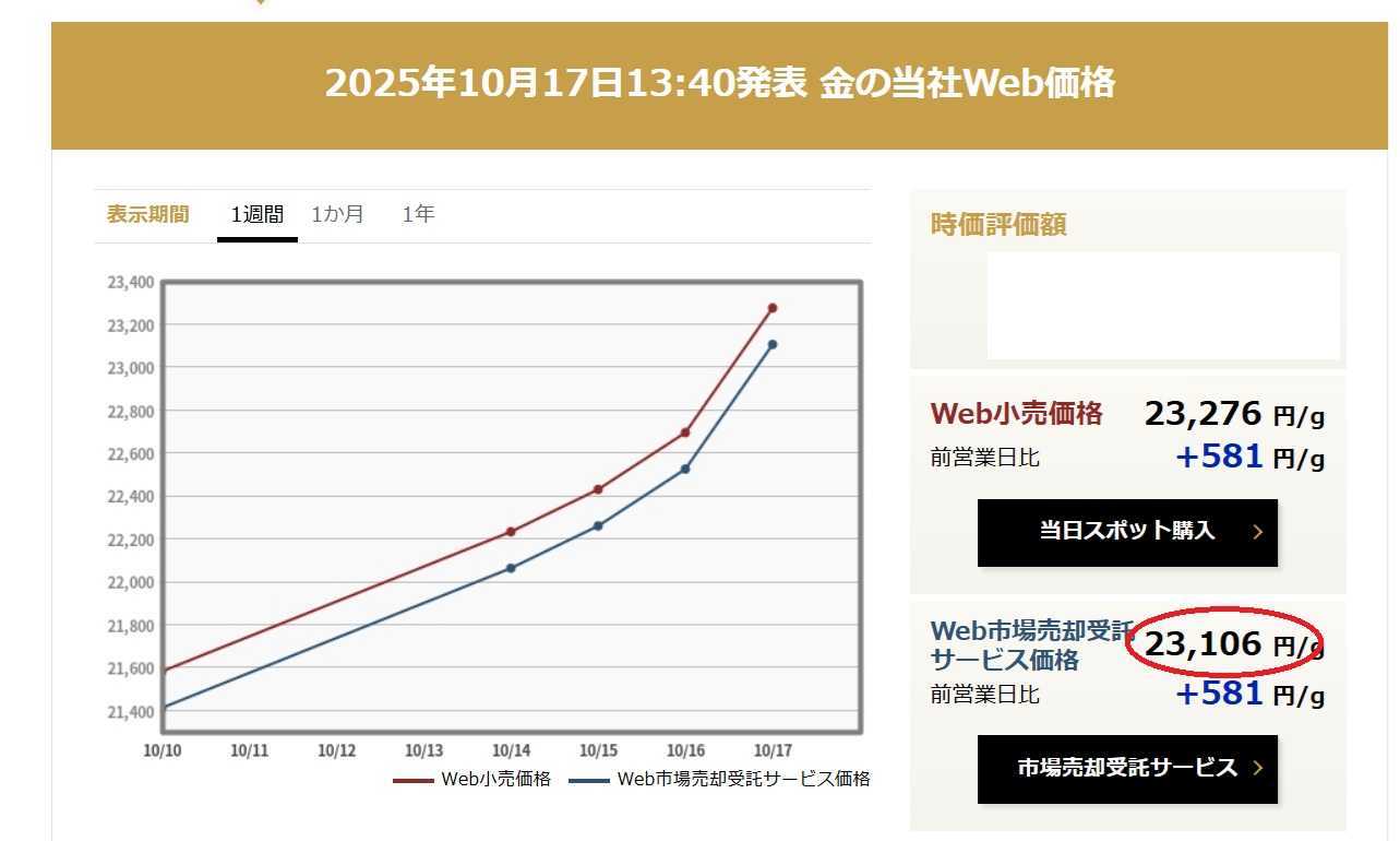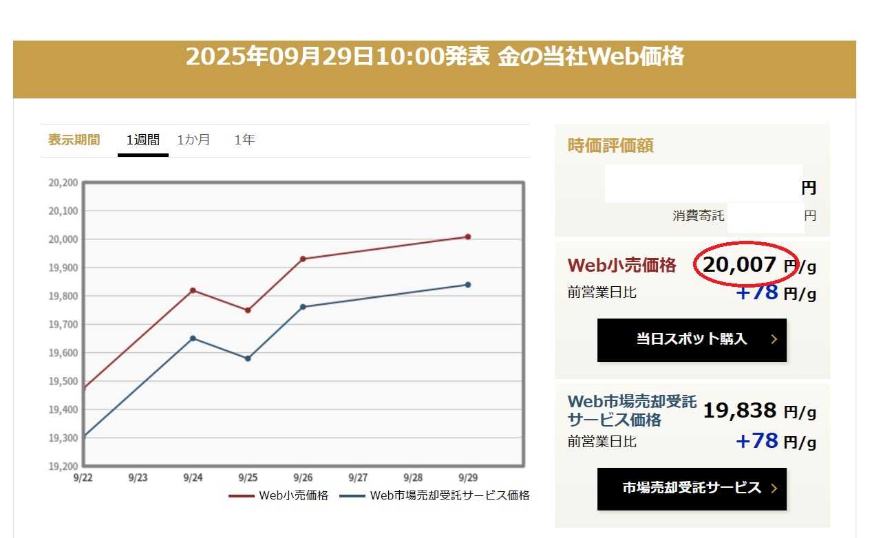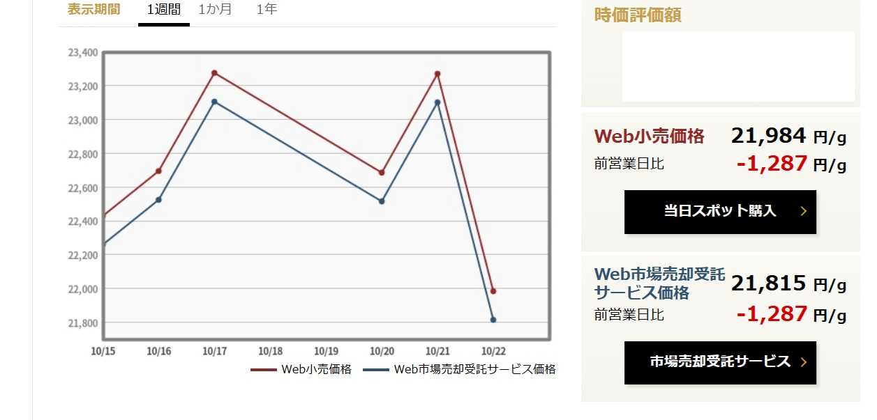 売却価格がグラム20,000円を突破した!1グラムで一泊旅行ができるよ(笑