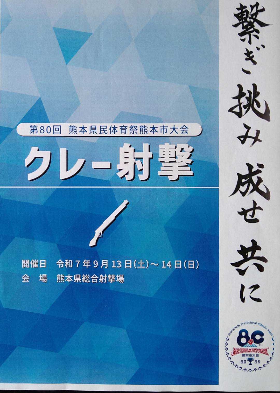 諸事情により、県下各自治体の持ち回りでの開催は今年が最後となります。ピンチヒッターで、クレー射撃競技のお手伝いをすることになりました。地元熊本市での開催となりますので、少しでもお役に立てたらと思います。