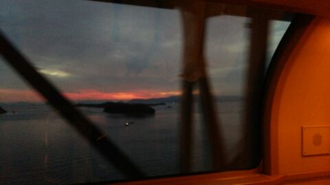 おはようございます。 サンライズ瀬戸で迎える朝はまだ真っ暗です。