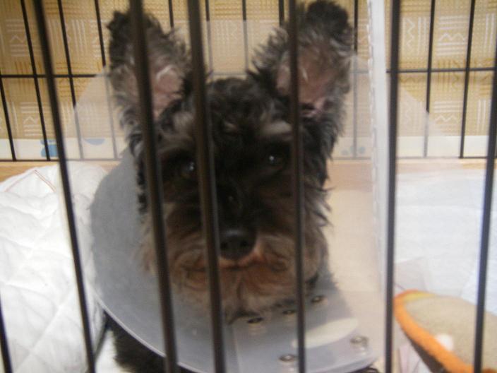 お・か・え・りご心配していただいた皆様ありがとうございました。シュカが今日9/29日入院から3週間目でやっと退院してきました。すごく元気なんで怖いくらいです。 当然ギプスをナメナメしてしまうので「エリザベ~ス・・・」さんのお世話になっております。シュカは立ち耳だったけど、この「エリザベ~ス・・・」さんのおかげで若干たれ耳状態に26日のレントゲンの映像ですが、まだまだ、付いていませんね。当然か。うちの母親はなんともう骨が付き始めているそうでシュカとの回復レースは母親が一歩リード。狭い部屋に入れられて変なの着けられて大変だけどシュカは我慢だよ。今が一番大切な時だからね。 これからの方が大変だと思いますが家族で乗り越えて行きたいと思っています。出来る事は甘やかさないでとにかく以前のように普通に過ごせたらいいです。また、一緒に走れるように。