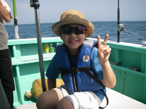 シュカパパです 日曜日に息子と九十九里の海に船釣りに行ってきました。 私も息子と同じくらいの頃から親戚のおじさんによく連れて行ってもらい、今回もそのおじさんに親子共々連れて行ってもらいました。 AM3:30に迎えに来てもらって海には5:00到着~ いつもはもう1時間早いそうなので海の上、船から日の出を見るらしい。 最初は曇りかと思ったけど結局晴れて日に焼けてしまいました。 釣りは1本の竿で息子と一緒に頑張りました。 狙いは30メートル海底のハナダイ・アジですが。 最初に連れたのは サバ でした。2匹目もサバ。3匹目は何とオニカサゴ 棘に毒があるのでおじさんに取ってもらい海に返しました。毒さえ気をつければ とても美味しいんですが危ないので。次はトラギスでした。 やっぱり棚が違うんですよね。アジがいる所に針を持って行ってない。 ちょっとしたら息子が気持ち悪いそうで、ダウン 船に酔ってしまいました。私は今まで1回も酔った事がないのですが・・・ またちょっとしてムックのチョコレートを食べたあたりか ら復活!さあ!釣るぞー また、変な魚。ヒラメの小さいの。また、次に小さいこれ わ~い!小さくてもハナダイだ! 結局アジは途中まで来てて逃げちゃったりで釣れなくて。おじさんが1匹くれました。 肝心の釣果ですが、こんな感じ おじさんが言うにはみんなも今日は全く釣れなかった日だったそうです。 前日に底引き漁があったそうで根こそぎ捕って行っちゃったのか? 初めての船釣りの息子はそんなの関係なく大喜びで、また来たいと言っていました。 そして海の魚は食べるのがまた楽しみ。 実家で家族と両親で夕飯作り。シュカちょっ とお留守番。 サバの味噌煮にから揚げなどまた、大好きなシメサバは次の日までおあずけ。 小さくてもヒラメもハナダイもいい味してました。 ごちそうさま。