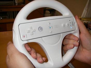 ハンドルです やっぱり買ってしまいました。マリオカートWii 夜中に子供より先にシュカママが遊んでいます。かなり気に入ったようです。 シュカも呆れ顔・・・