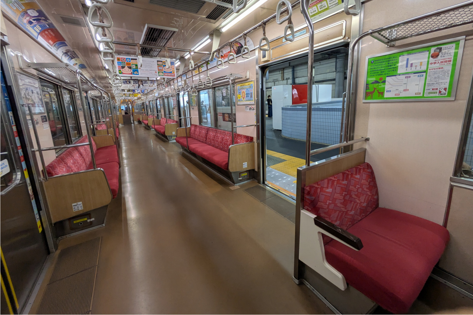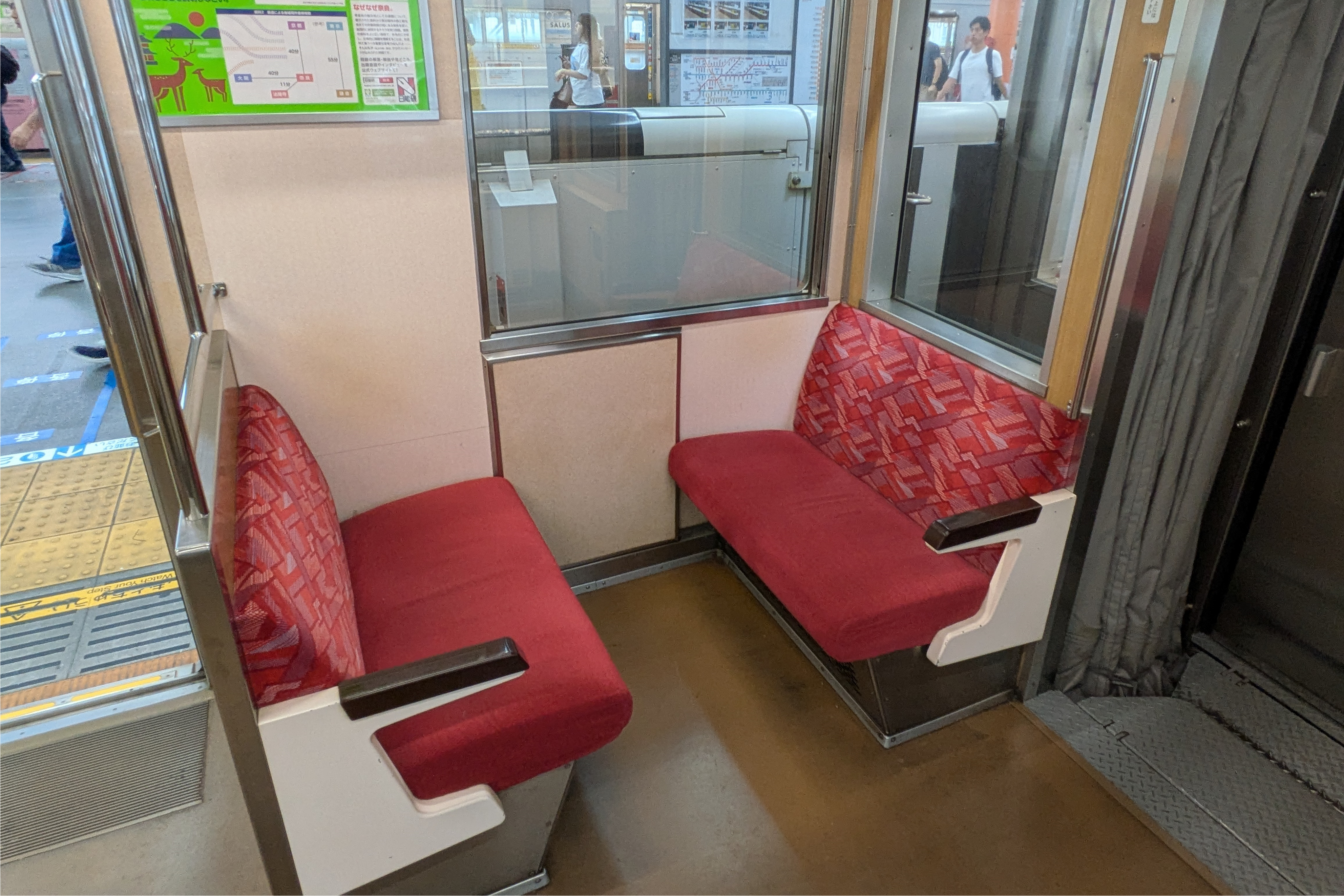 I sat on a transverse seat and listened to the mechanical sound while travelling.