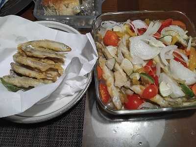 まだ残ってるワカサギを食べてます。南蛮漬けわかさぎ茶漬け天ぷら 最近のイチオシはオイルサーディンわかさぎのオイルサーディン丼ワカサギとショウガ、醤油、ねぎなどど食べます写真は菊菜ものっけて食べてます。ワカサギの南蛮漬け