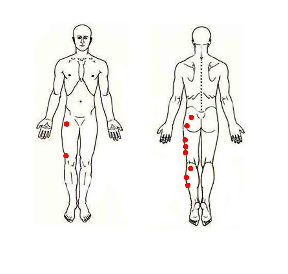先週の土曜日のパーティでは、じっと我慢の子で余り踊っていなかったはずなのに翌日から左脚で立て無くなってしまった。やはり無理してしまったようだ。今までは寝ているときは問題なかったが、左脚を伸ばして寝ているだけで痛みが有る。トリガーポイント注射で治療していると、痛い場所が変わってくる。新しい痛みが出てきたと不安になりますが、痛みの場所が変わるのは注射がよく効いている証拠。慢性疼痛患者さんは体のあちこちに痛みがあります。しかし、脳はすべての痛みを認識するわけではなく、特にひどい痛みだけを認識して、弱い痛みは認識しません。その結果、弱い痛みは強い痛みに隠れてしまいます。トリガーポイント注射でひどい痛みがよくなってくると、今まで隠れていた弱い痛みを感じるようになるのです。痛い場所が変わってくることは良くなってきてる証拠それを信じて、にしぼり整形外科さんに通っています。痛いところをプリントして今回は持って行きました。にしぼり整形外科さんに行く前に、3ヶ月間を地元の整形外科でブロック注射や、整骨院4個所で保険外のマッサージで毎日高いお金かけて通院、鍼までしても悪くなる一方・・・。そして、家では出来るだけストレッチして、ネットで坐骨神経痛の痛みを、おしりの筋肉をストレッチしたりマッサージをしたりして治す方法が紹介されています。どの方法も効果的だと思います。でも神経痛が筋肉のストレッチやマッサージで良くなるのでしょうか?。疑問に思い始めてました。神経痛なら神経に対して何か治療しないと良くならないはずです。そして、勧められてにしぼり整形外科さんに通院。かなり良くなって来て居ます。『慢性痛になっているから時間がかかるよ』そう西堀先生に初診で言われました。(先生のブログより転載)坐骨神経痛は本当は神経痛ではなく、おしりの筋肉にできたトリガーポイントが原因だからです。おしりにある小殿筋や中殿筋、梨状筋などにトリガーポイントができると、痛みやしびれを感じます。その痛みを感じる範囲がちょうど坐骨神経が走っている領域と重なるので坐骨神経痛と間違って呼ばれているのです。 患者さんから「私の病名は坐骨神経痛ですか?」と聞かれたとき、私はこう答えます。「坐骨神経痛は病名ではなく、頭痛や腹痛などと同じ症状の名前です。坐骨神経があるあたりが痛むのを坐骨神経痛といいますが、神経が悪いのではなくおしりの筋肉にできたトリガーポイントが原因です。」 上記の記事もおしりにできたトリガーポイントをストレッチやマッサージで解除する方法が紹介されています。でもマッサージやストレッチより、トリガーポイント注射のほうが早く良くなりますよ。無理せずに踊り続けられるように、通います。