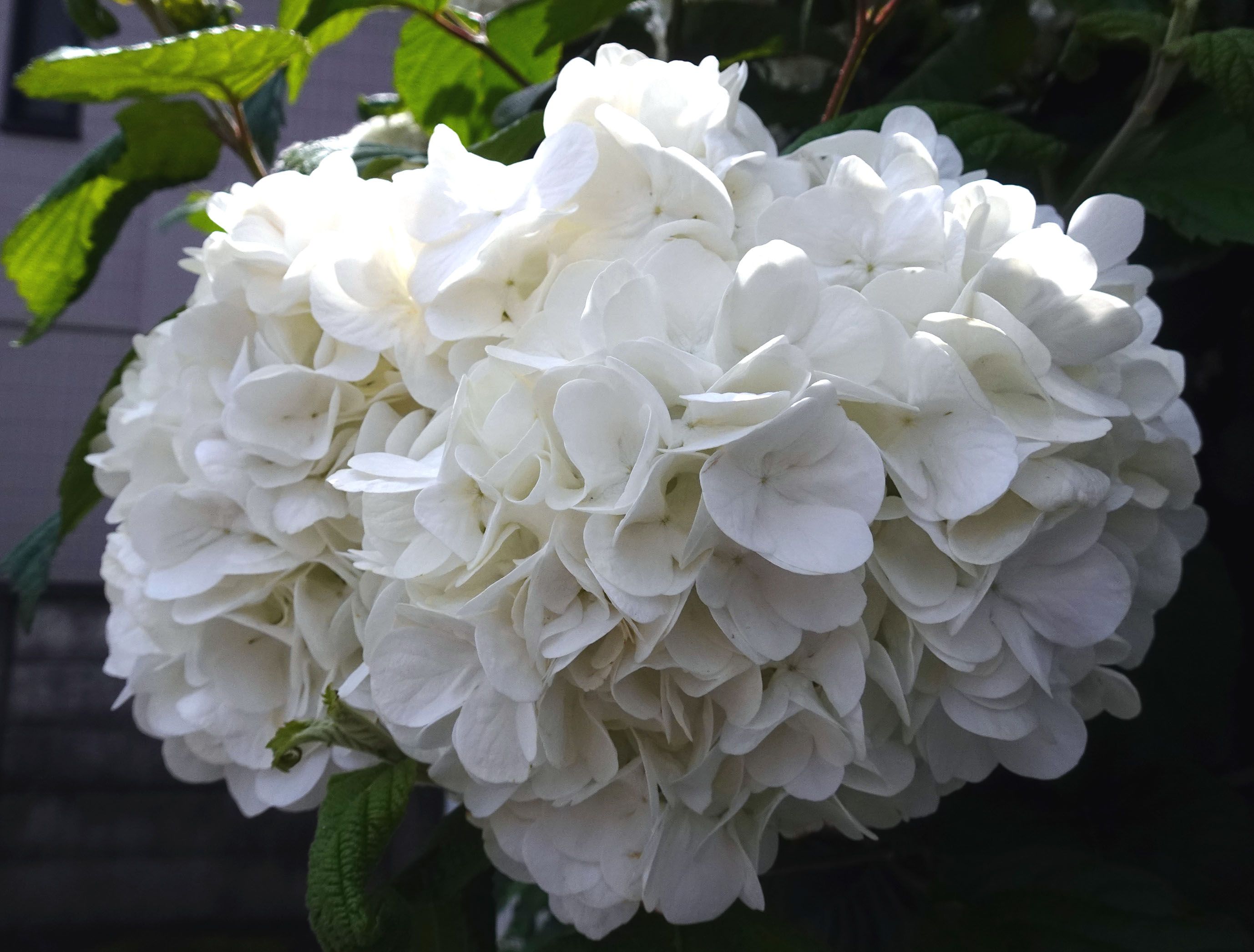 オオテマリが薄緑から白に変わってきています。外から写していたら、あい助が覗いています。どこにいるか解りますか?。白になってますね。その他の花も・・・休日でしたが、仕事していましたので偶には花を愛でなくては(笑)