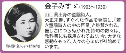 ご覧頂いてありがとうございますはじめに、東北大震災で被災された皆様に、心からお見舞い申し上げます一日も早い復興を応援するために、私は贅沢を一切やめ、募金をいたしました関東の私ができることはちっちゃな事かもしれませんが応援する心は大きいと思っておりますどうか、気持ちを強く持って希望を捨てないで居てくださいテレビを見ていると最近のCMは人の優しさのCMがかなり頻繁に出てくる気がします金子みすヾさんの詩も何度も出てきます「ありがとう」っ言うと「ありがとう」って言う、「ごめんね」って言うと「ごめんね」って言うこだまでしょうか?いいえ、誰でもっていうあの、CMです金子みすヾ>>>それから、もう一人頻繁に出てくる方が居ますそれは宮澤章二さんですおもいは見えないけれど、思いやりは見える・・あのCMです。宮澤章二さんは、こちらの小学校・中学校の校歌も作っていただいています子供たちも良く知っている方です。今の日本人が忘れている思いやりの心を思い出していろんなことに感謝しながら生きていかなくてはいけないと強くおもいました。“ムジナもん”のいる埼玉県羽生市出身の現代詩人その人の名は“宮澤章二”(みやざわしょうじ)大正8年(1919)、羽生市弥勒に生まれた小学校2年生のときまで羽生で育ったが、その後上京し、東京の小学校を卒業した。『あんぶくの臍』『蓮華』『旅路』などの詩集を編む一方で『知らない子』といった童謡集も出した。詩人であり、また作詞家と言る校歌の作詞に関しては300校を数える