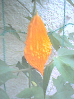 ■庭先で母が植えていたニガウリが、黄色く実りました。 味は・・・どうなんでしょ?
