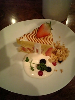 堀江でまったり。こないだは英会話に行ったあと、お買い物をして友達と合流。Knit Caféでほっこりお茶するのがすごい好きな時間のうちのひとつなんだけど。なんか女の子っぽくて。(言わなくていい)編み物なんてしないけど(それも公言することでもない)やっぱカスタードのいちごはウマイな~。な~。しあわせ。。。 ってこないだからハマってるロイヤルミルクティーをオーダー。はぅ。またカロリーが!!なーんてそんなこと気にしたことありません(いつも言うだけ)英語の復習とか、ゴルフの話とか、とりとめのない話の中でも自分の話をしっかり聴いてくれて(流さずに)、それに対して(正解かどうかは関係なくね)、自分の意見をきちんと言葉にできる人って一緒にいて気持ちがいいものデス。なかなか今あんまりきちんと人の目を見て話す機会も少ないからね。自分もしっかりしよう。見習おう。と思いつつも、やはり恥ずかしくって目を反らしてしまいません??(だって今カップルシートとか多いし!!)←いいわけ(カウンター席も、車乗ってても、歩いてても、向いてる方向は1方向でしょ)←しつこいだから日本人はダメなのかなー。でも照れ屋さんは日本の美徳だよ!ポジティブ!!