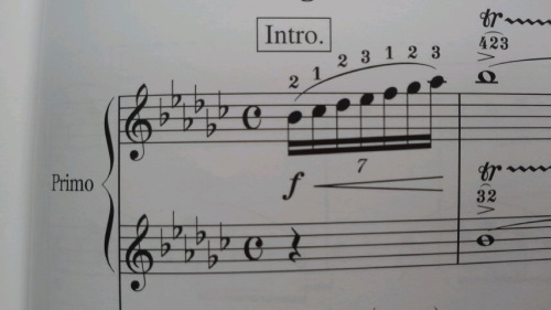 ト音記号と、2全音符と、32分音符と、セーニョ、そして○に×…?