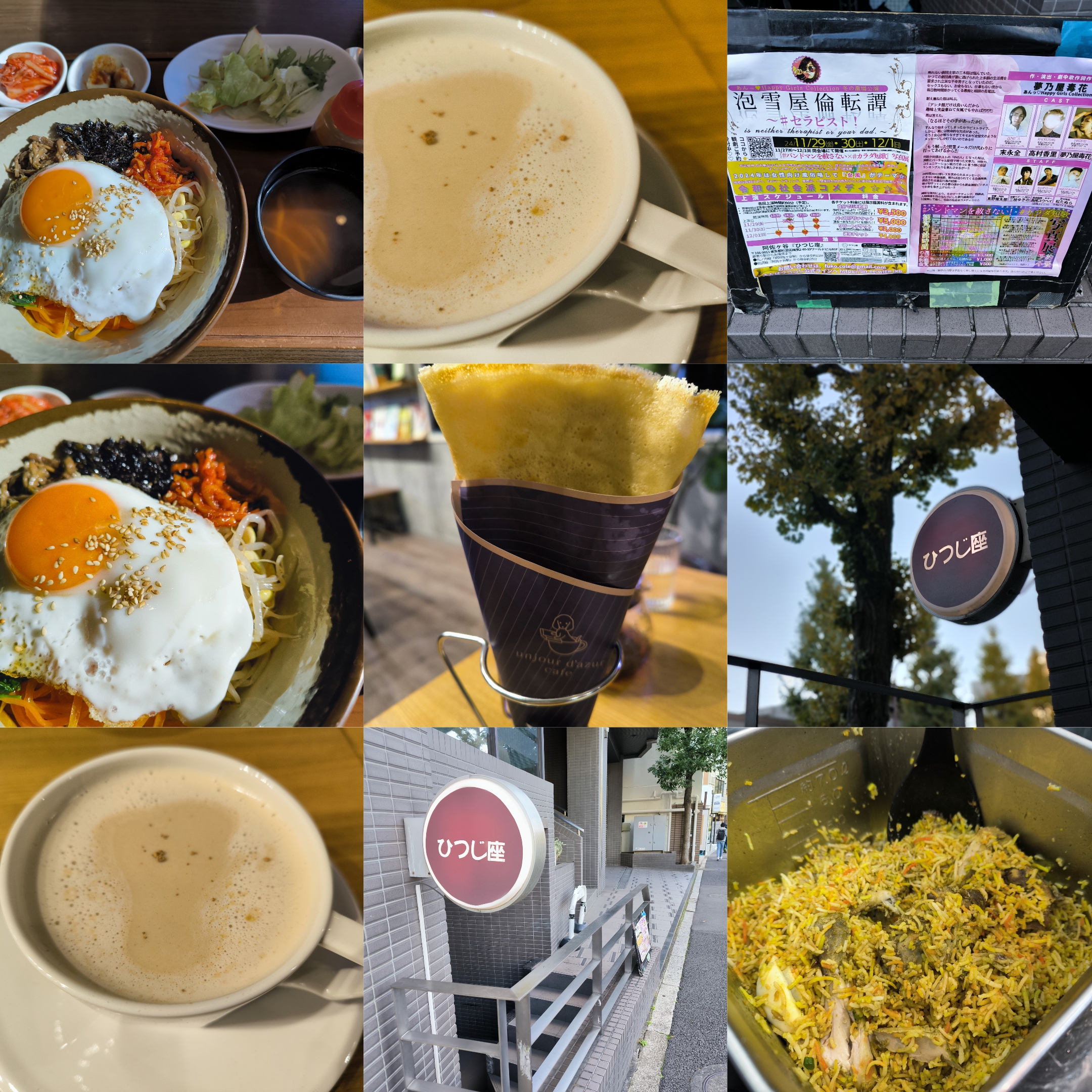 土曜日勤務→韓国料理→カフェ→お芝居→服屋さん