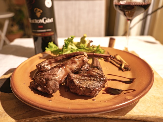 Mouton Cadet 2022と子羊のロースト。ベランダで🍷✨