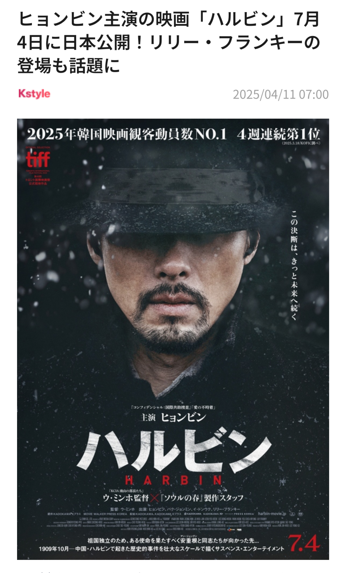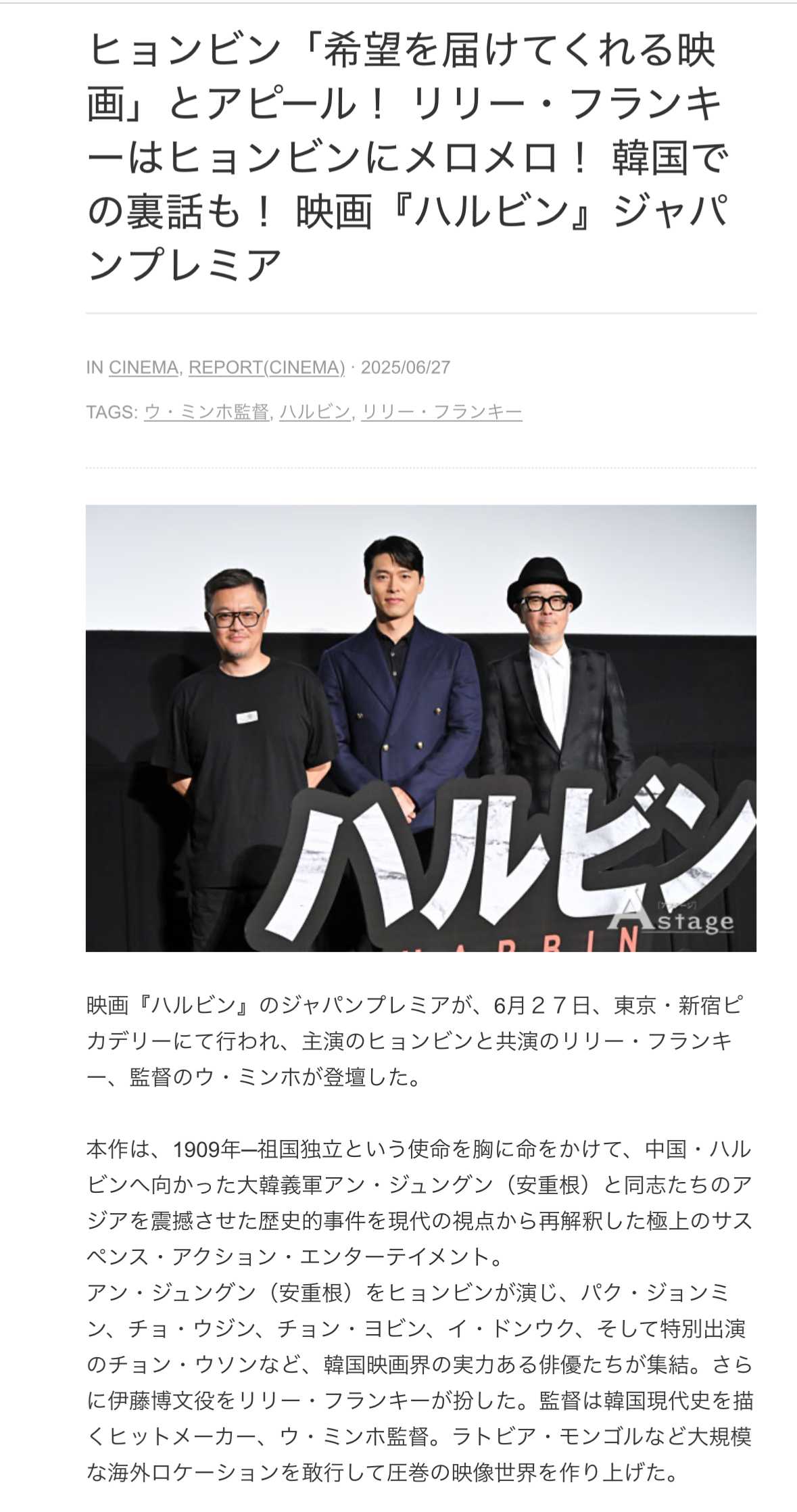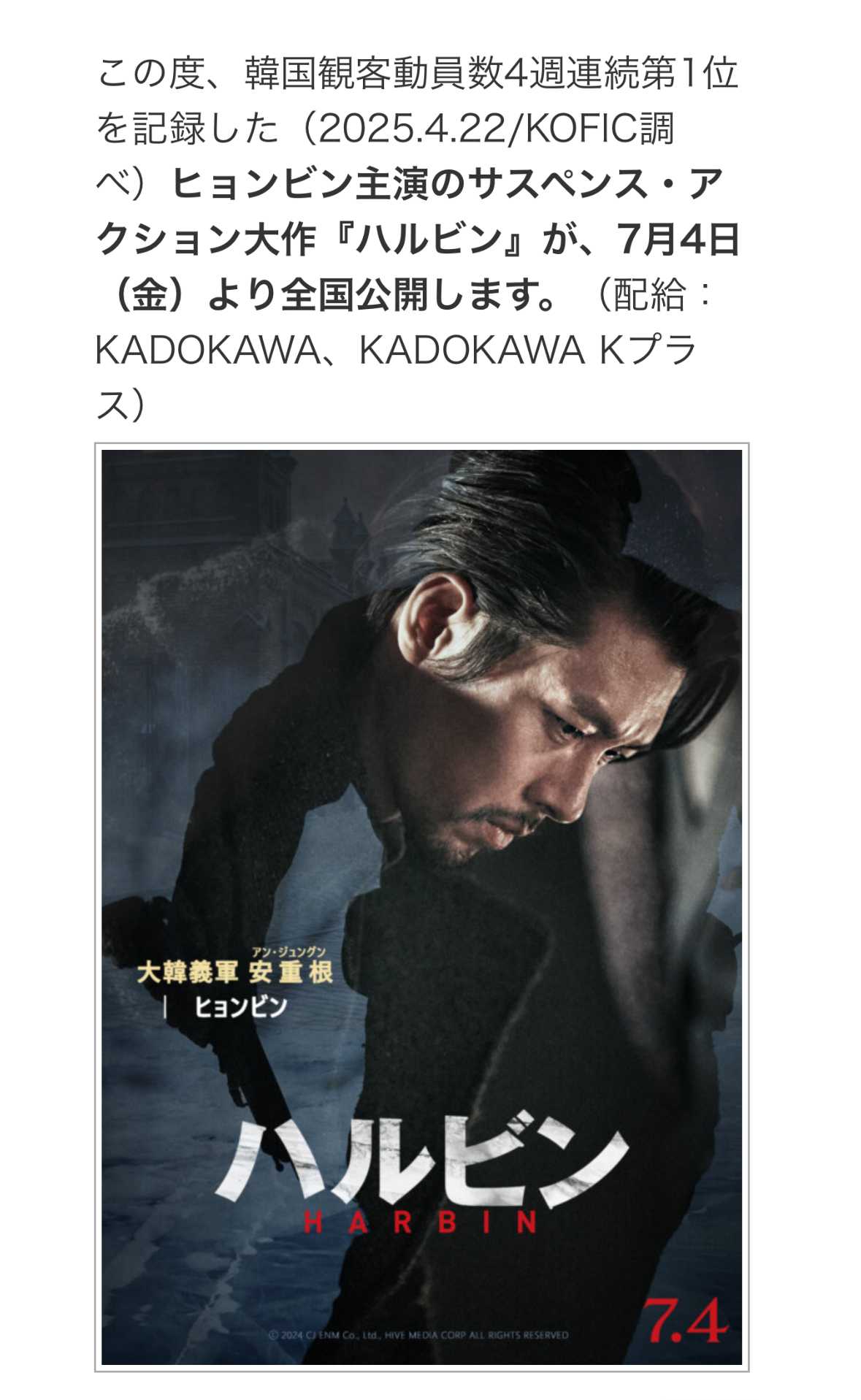 ヒョンビン来日決定‼️ 映画🎬「ハルビン」プレミアム試写会&舞台挨…
