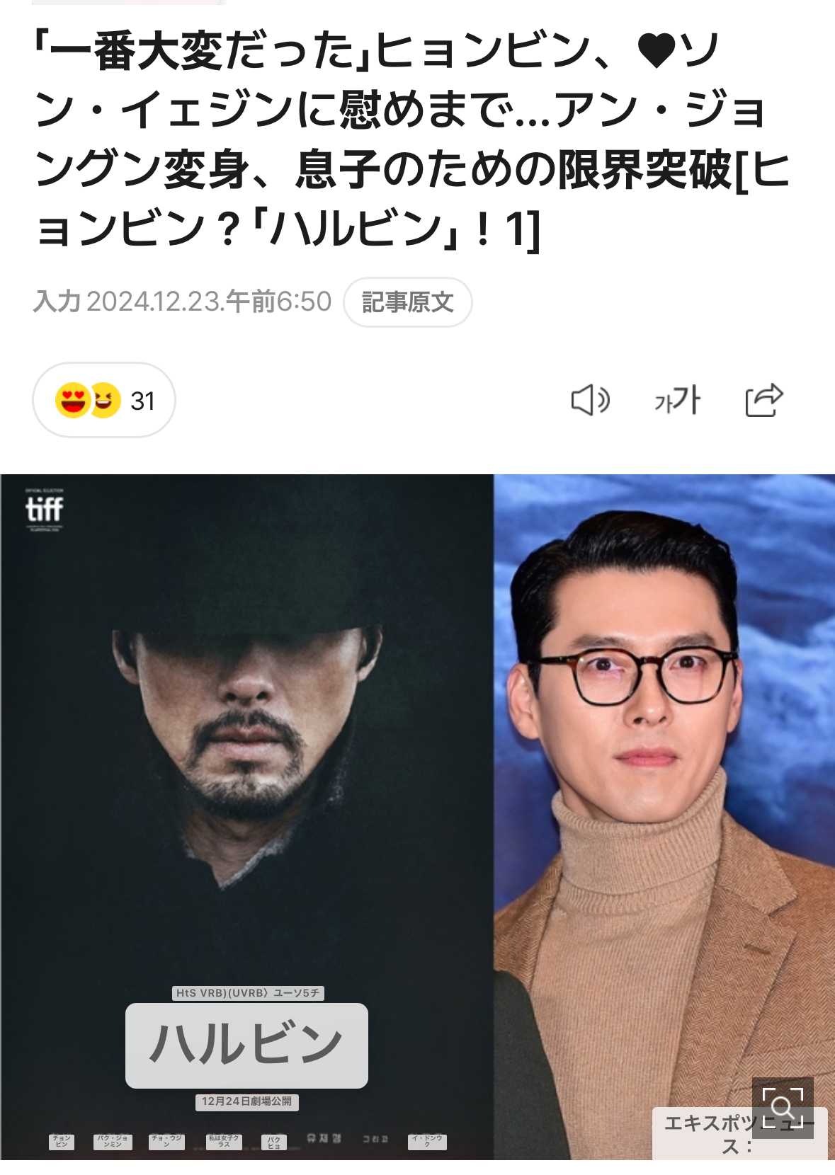 父として・・ヒョンビン🎬「ハルビン」インタビュー