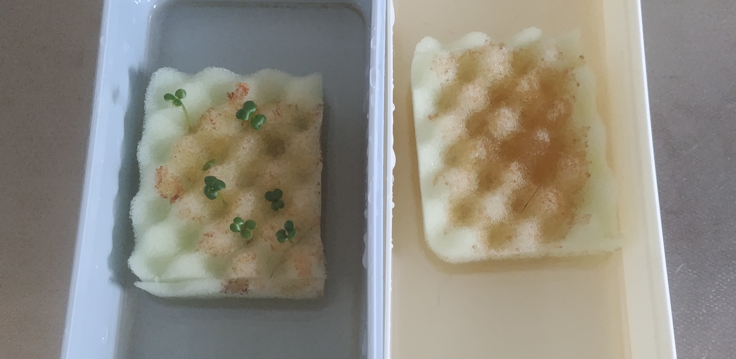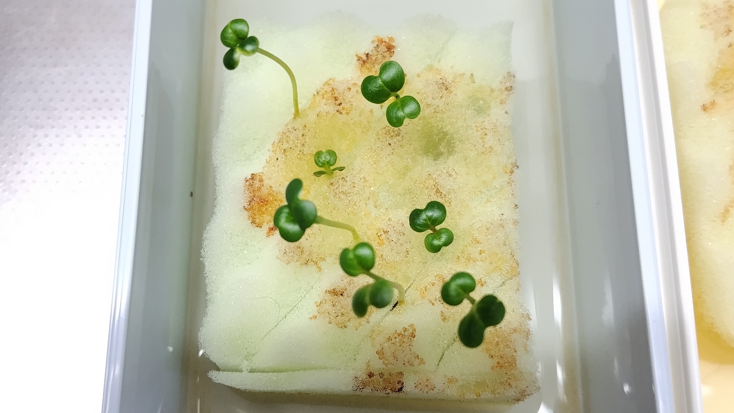 水耕栽培の小松菜とサニーレタス 芽の様子 ③