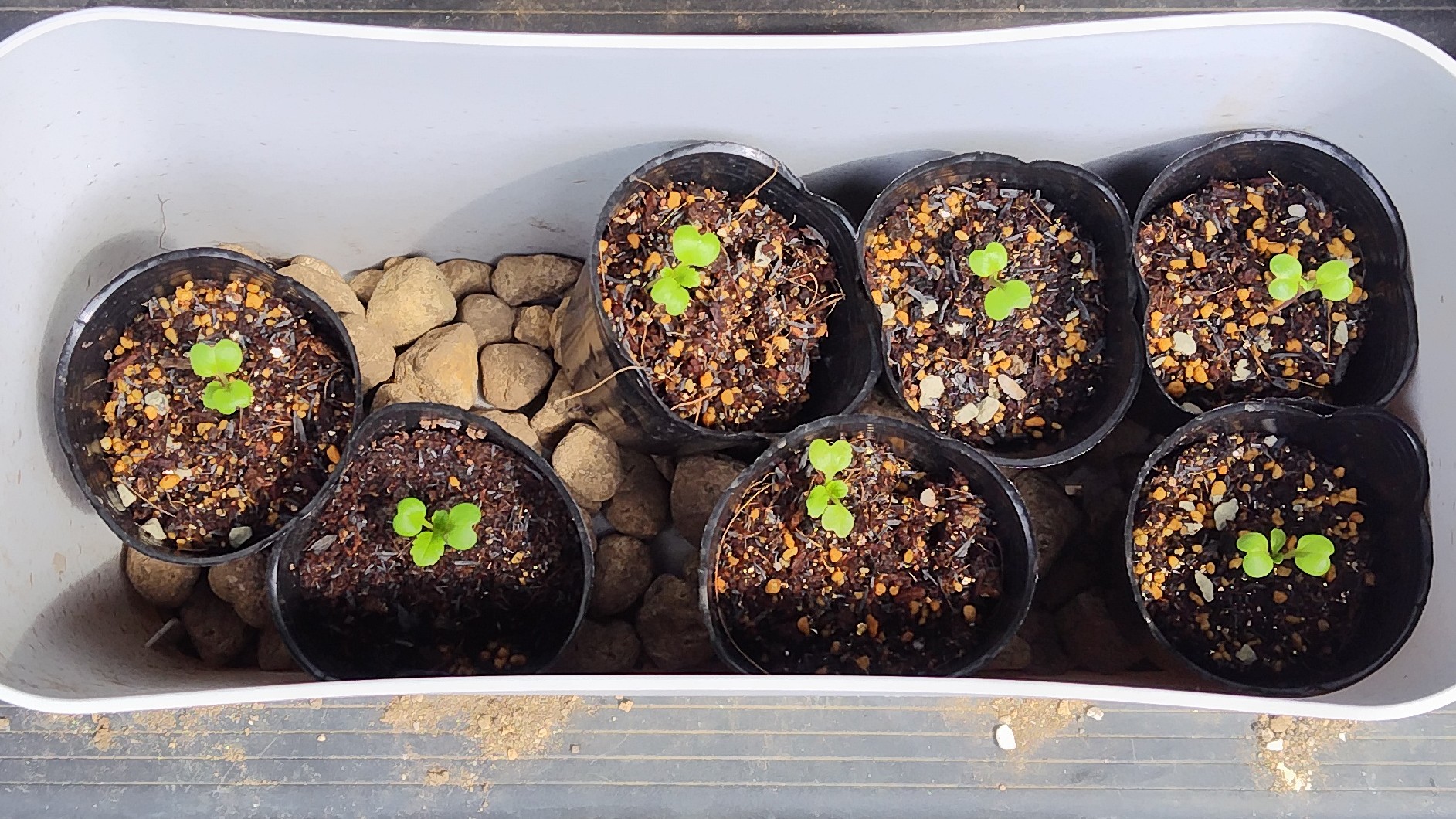 鉢上げ 小松菜 ④ ❣ 再挑戦 サニーレタス ❣ 種蒔き ミニトマト