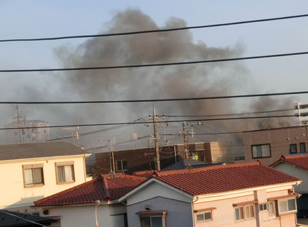 今朝方、近所で火事がありました。火柱と黒煙が高くて怖かったです。