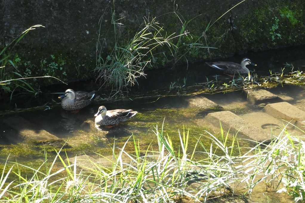 散歩で撮った鳥;カルガモ達、アオサギ、イソシギ、キセキレイ。