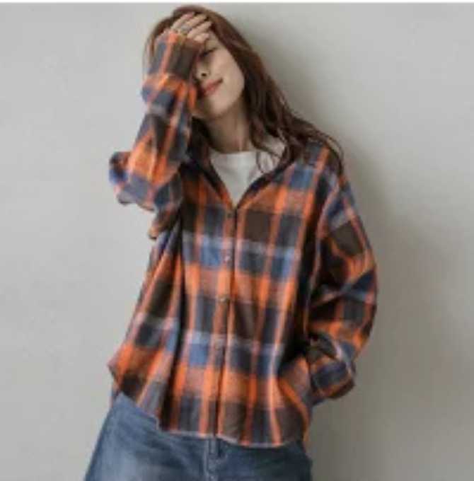 「秋冬ゴルフ レディース チェックネルシャツ 羽織り」