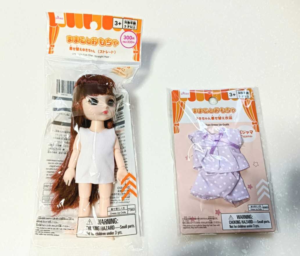 ダイソー 着せ替えゆきちゃん(ストレート)とパジャマとセリアの服に…