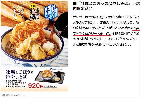 ●天丼てんや ポンテポルタ千住店 で 『牡蠣とごぼうの冷やしそば』