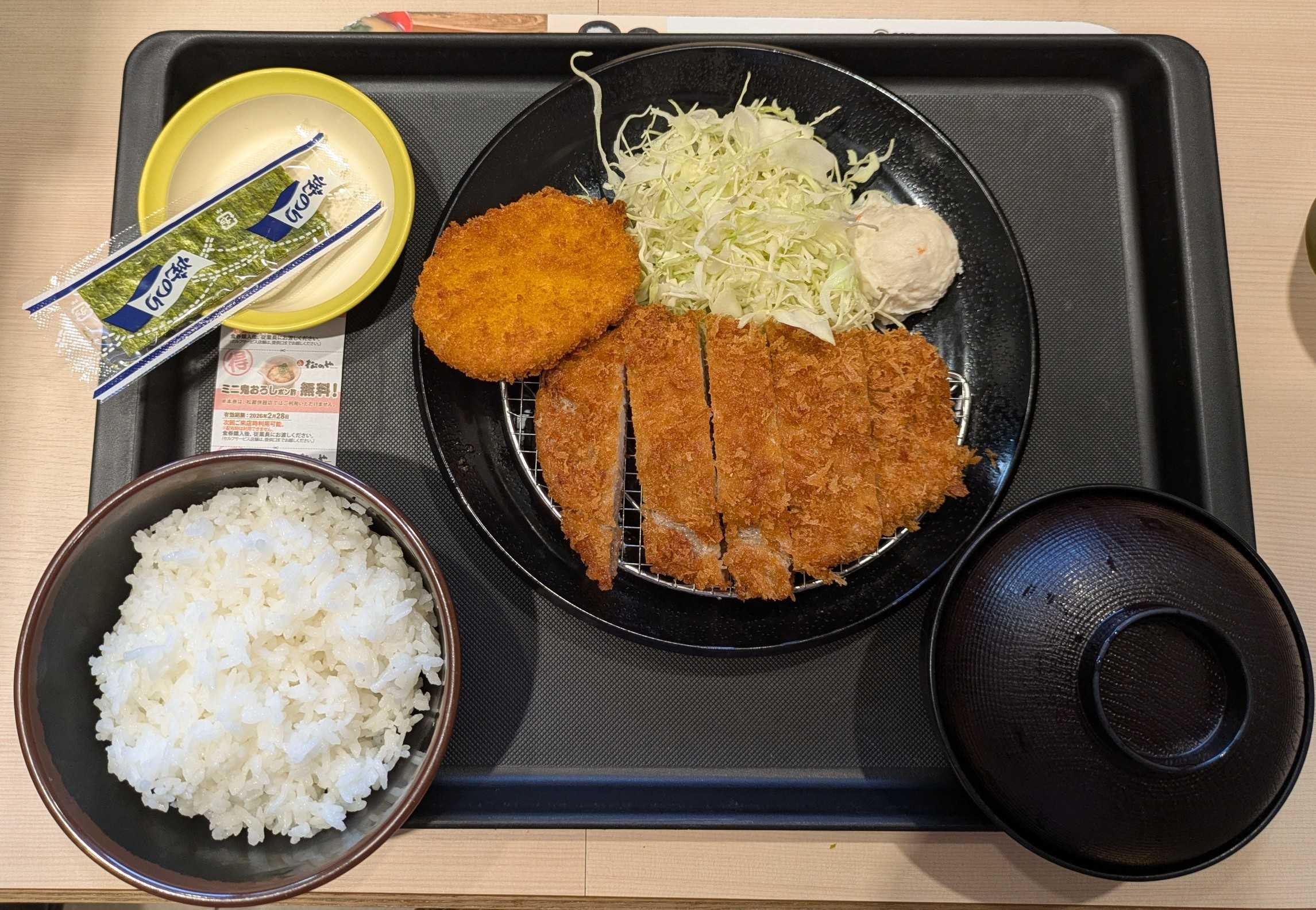 松のやさんで得朝ロースかつ定食(コロッケ)