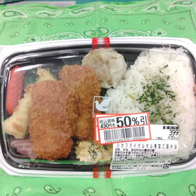 いかフライタルタル青菜ご飯弁当(215円←430円)〈ヨークマート〉