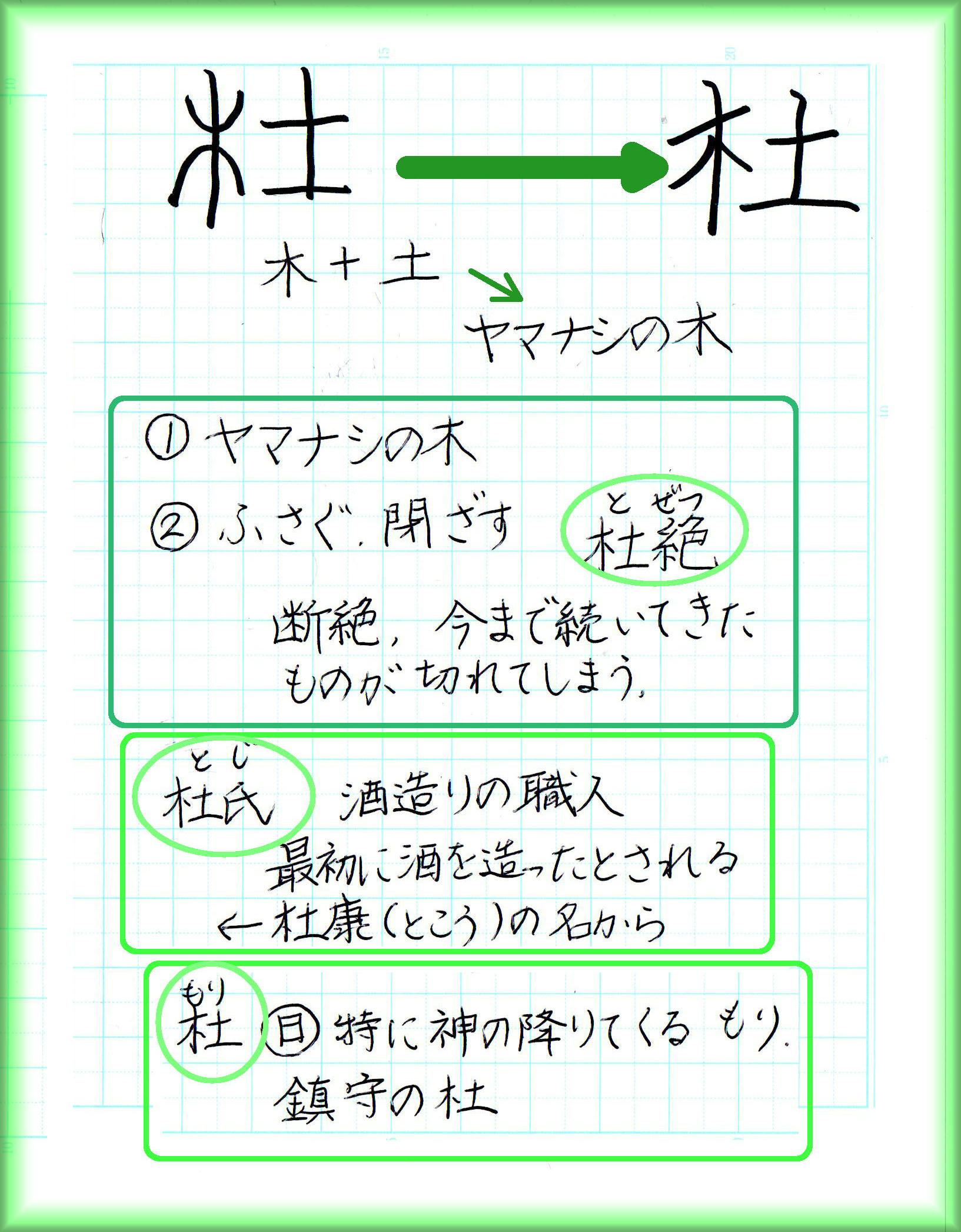 ★杜撰(ずさん)・杜氏(とじ)・杜(もり)の「杜」★