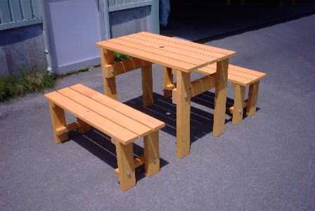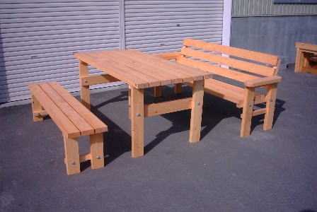 無節材のガーデンテーブル3点セット(テーブル1、背無しベンチ2)