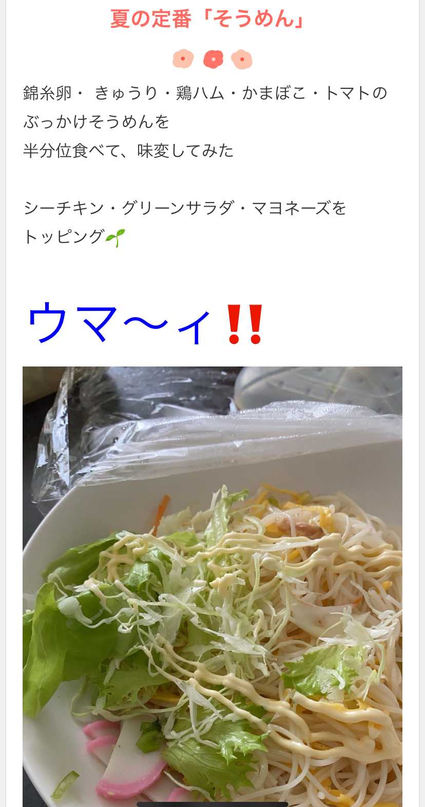 夏の「ぶっかけそうめん」ツナ・マヨ・グリーンサラダ‼️