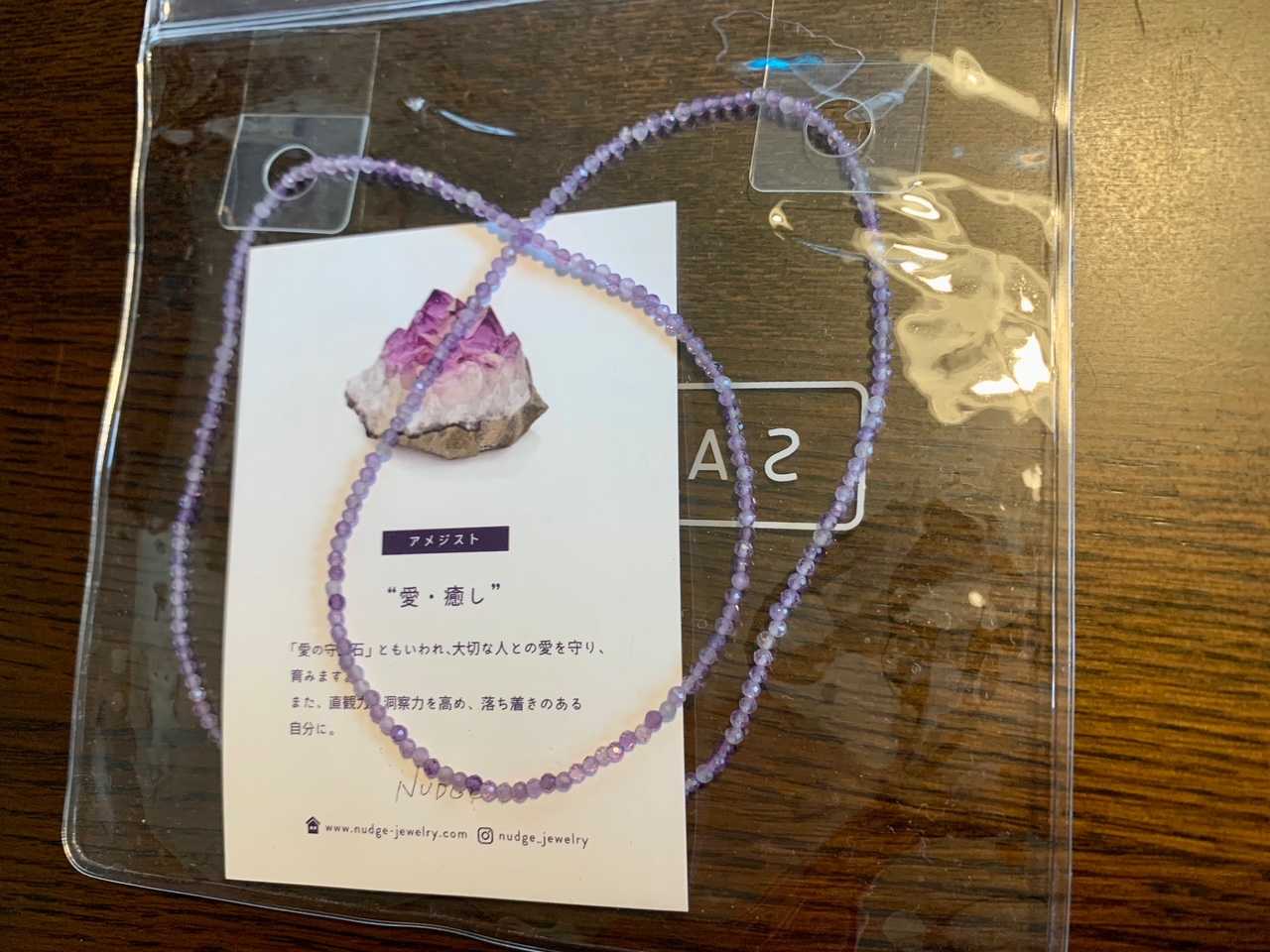 眼鏡チェーンを引っかけてしまい、糸が切れてアメジストビーズがバラ…