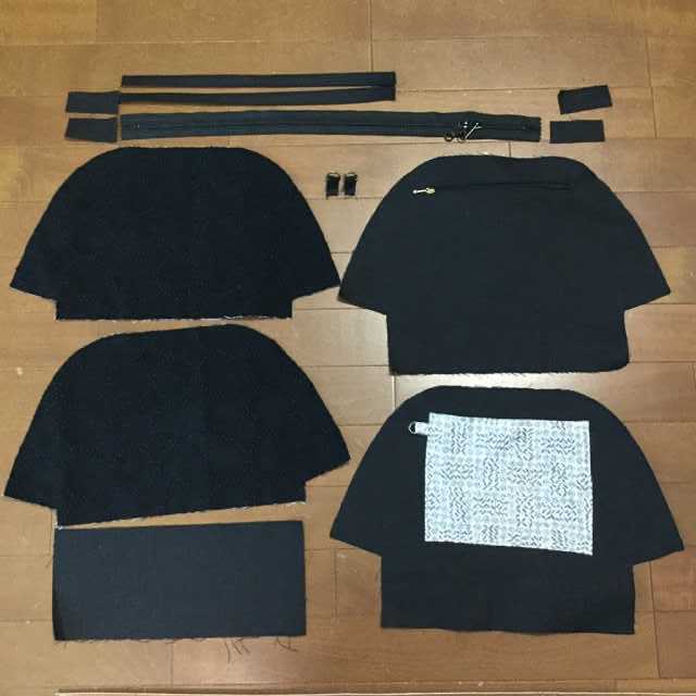 ミナペルホネン タンバリン ブラックで シェルバッグ②パーツの準備