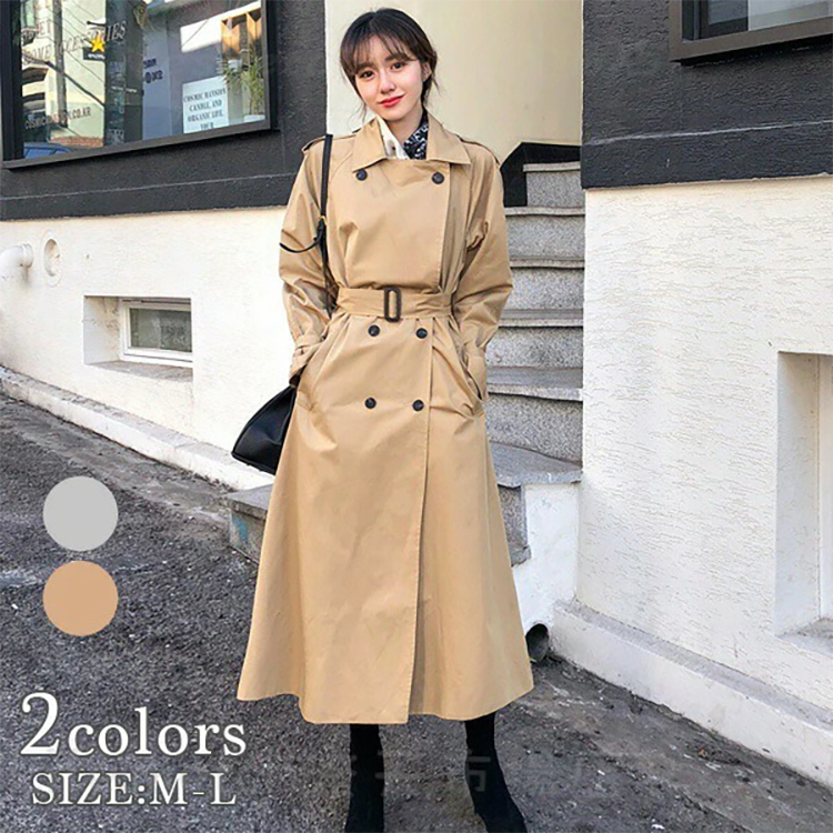 ◎レディース トレンチ コート ダブル ロング 4つボタン soomoo