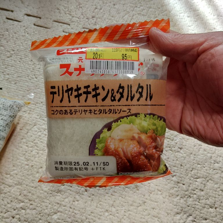 スナックサンド テリヤキチキン&タルタル(95円←119円)〈フジパン…