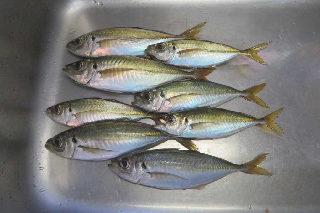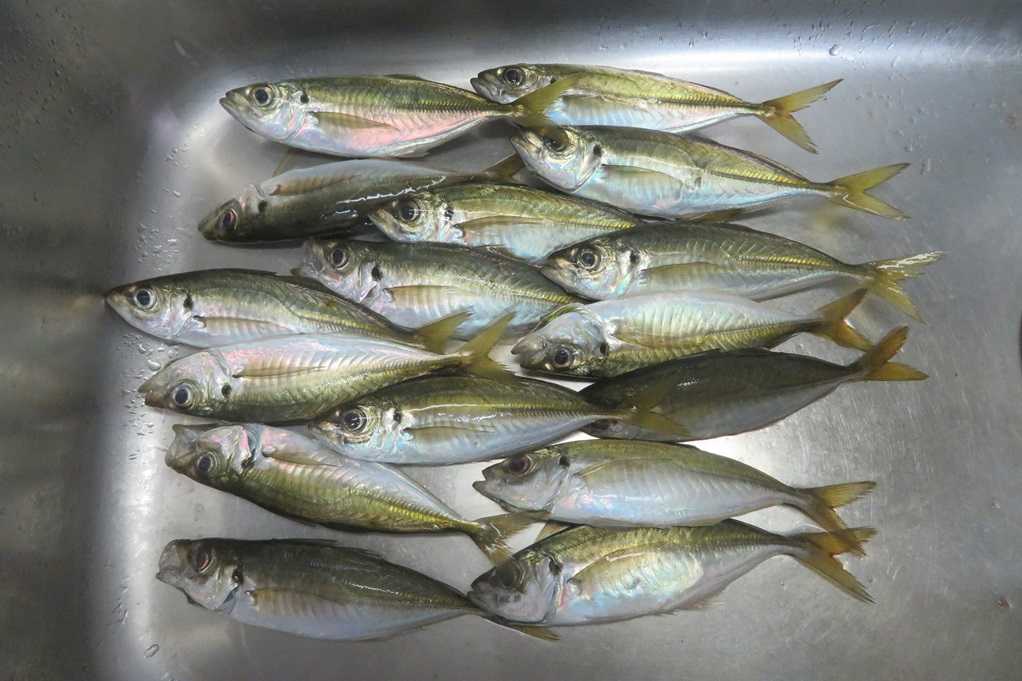 津久見の港へアジ釣りに行く(アジ11匹、小アジ12匹、小サバ8匹…
