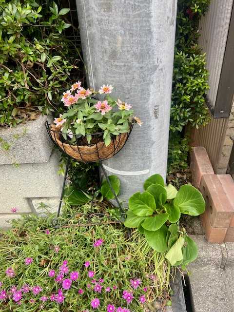 お隣との境に、ハンギングバスケットを掛けたスタンドを置いてたら、…
