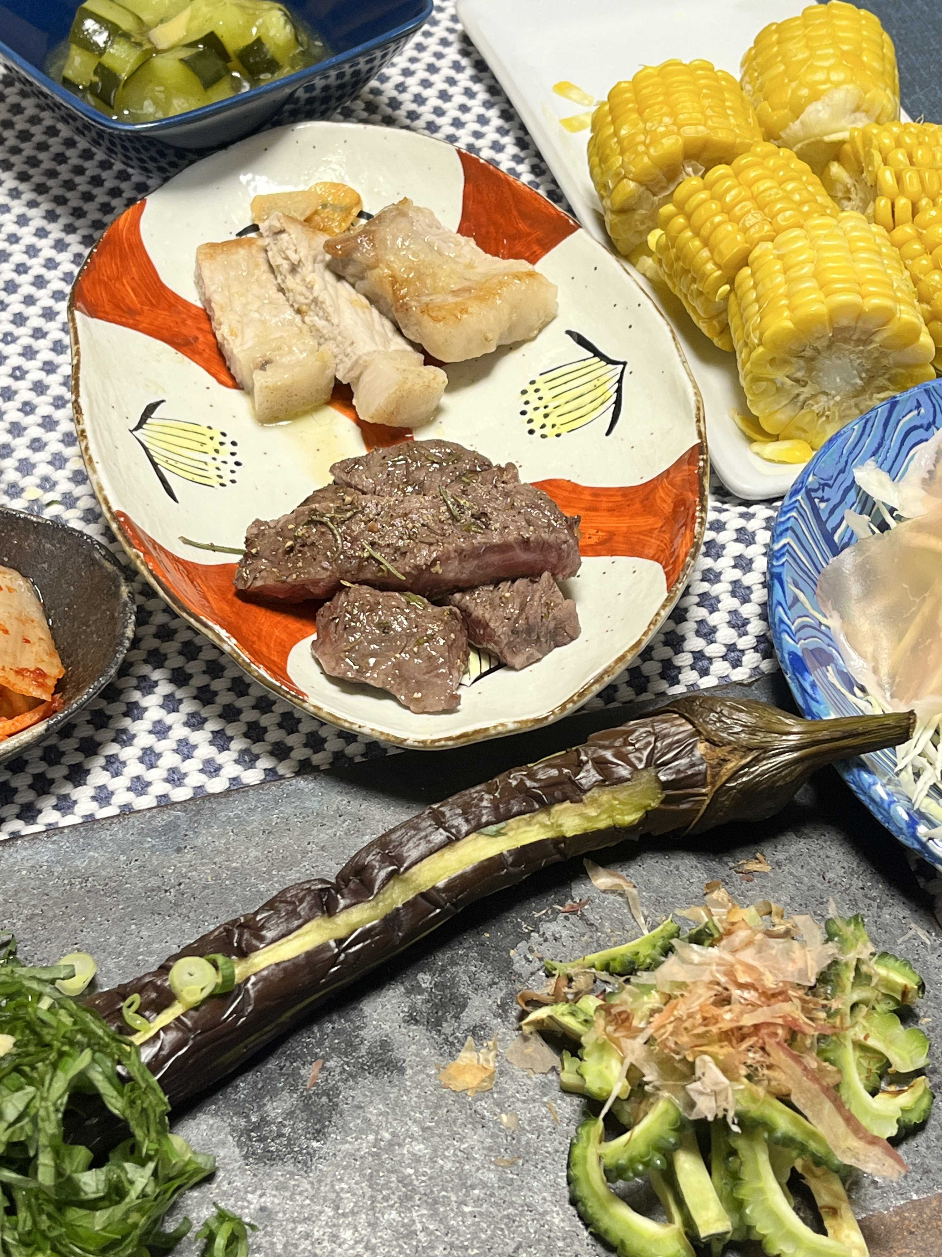 牛と豚でスタミナ回復‼️夏野菜と楽しい晩酌で心も体も栄養充填💕