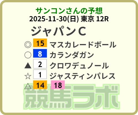 ギャンプル大帝オレ2025/11/30(日) 5回東京8日目 ジャパンカップ (…