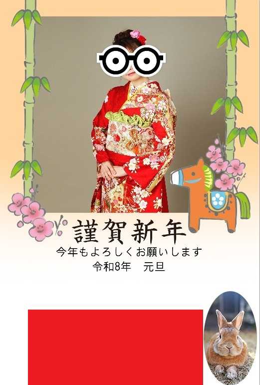年賀状作成。最初の年賀状のデザイン。左は家族(3人の子ども、4人…