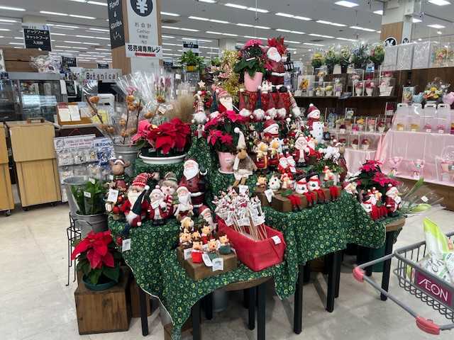 イオンの花屋で、サンタとトナカイのガーデンピックを買い、ゴールド…