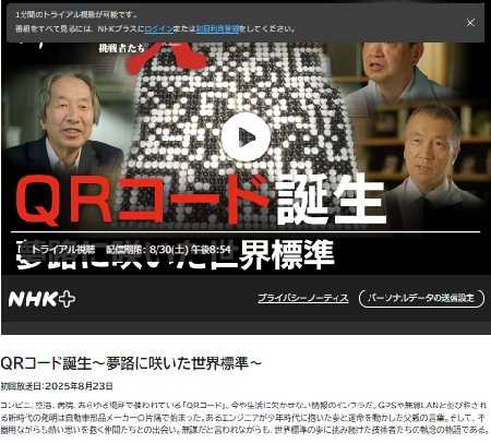 2025.8.23NHK新プロジェクトX:QRコード誕生〜夢路に咲いた世界標準〜