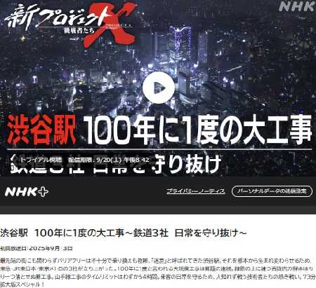 2025.9.13NHK新プロジェクトX:渋谷駅 100年に1度の大工事~鉄道3社…