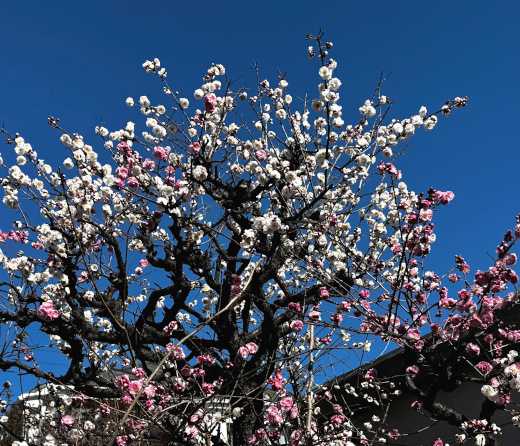 枚岡梅林のウメの花・玉英、藤牡丹枝垂
