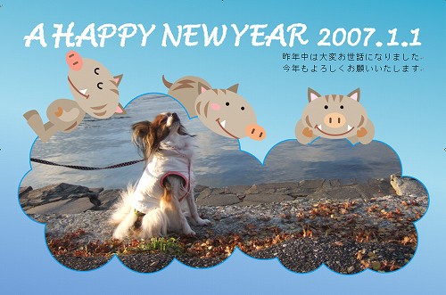 明けましておめでとうございます(*^_^*)ラッシュ共々今年もどうぞヨロシクお願いいたします年賀状は数種類作ったけど、コレ結構気にいってます♪もう2日の夜になってしまいました、お正月が過ぎるのも早いですね今日は母が遊びに来たのでお喋りで終わり大晦日、元旦は丁度旦那が休みだったので近所の神社に初詣に行きました。元旦は、正月気分を味わおうと思って犬山のリトルワールドに出かけましたが、門松も置いてなければ正月らしい飾り物も何も見当たらずちょっとガックリ・・・。坊は今年もイケてます(^^ゞでも流石ワンコ連れオッケーのテーマパーク、ワンコ連れの人も多数来てました。うちもラッシュの為に、わざわざ入園料を払って行った様なものね(;^^)σ3時過ぎたら寒くなってきて、4時閉園なので一回りしただけで帰る事に・・・これで入園料3200円は高い・・・。気を取り直して、それからいつものイ○ンに直行、夕方でもすごい車の数々数、ヒトヒト人!イ○ン恐るべし(笑)ペットパラダイスの福袋はサイズが残ってなかったし、他の福袋もイマイチ興味が沸かないしで何か物足りない・・・。ふと通りかかったオモチャ売り場で、可愛いウリ坊みっけ!カワイイ~!これラッシュ坊のお年玉に決めた! 喜ぶぞ~と車に戻り帰宅しました。さてさて「ウリ坊」にどんな反応をするかしら、旦那とウキウキしながら電池を入れて動かすと?写真をクリックしてね~^m^
